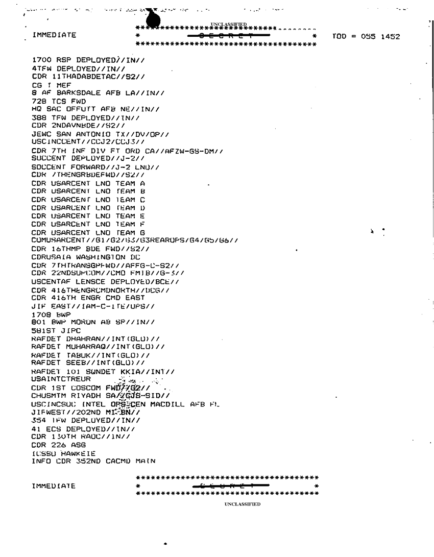Folder Title = TACTICAL OPERATIONS CENTER LOGS-INCOMING MESSAGE FILES- 24 TO 26 FEB 91