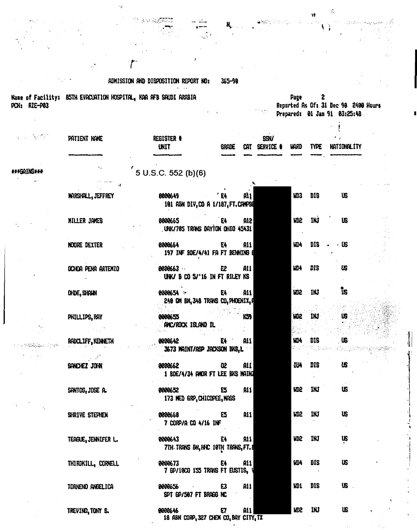 Document 29 f:/Week-32/BX000482/MEDSTAT - SITREPS DEC 90 4 OF 6/patient summary:0906961515135