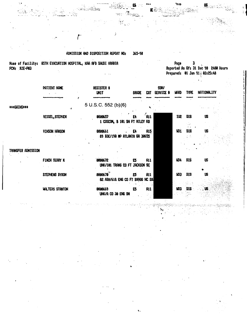 Document 29 f:/Week-32/BX000482/MEDSTAT - SITREPS DEC 90 4 OF 6/patient summary:0906961515135