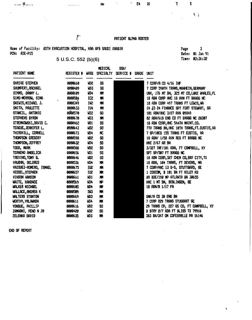 Document 29 f:/Week-32/BX000482/MEDSTAT - SITREPS DEC 90 4 OF 6/patient summary:0906961515135