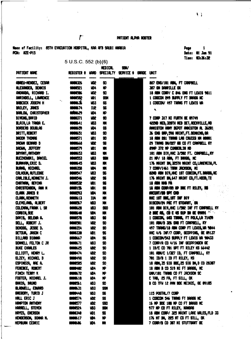 Document 29 f:/Week-32/BX000482/MEDSTAT - SITREPS DEC 90 4 OF 6/patient summary:0906961515135
