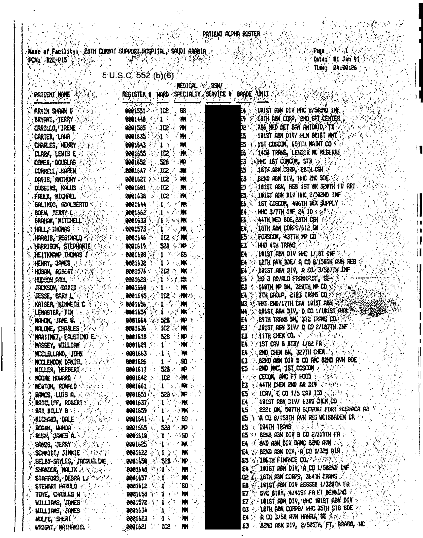 Document 29 f:/Week-32/BX000482/MEDSTAT - SITREPS DEC 90 4 OF 6/patient summary:0906961515135