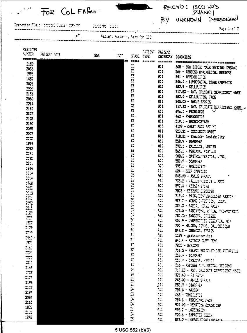 Document 8 f:/Week-31/BX000460/MEDSTAT- SITREPS - JANUARY - 1/patient alpha roster 7 jan 91:09069615152517