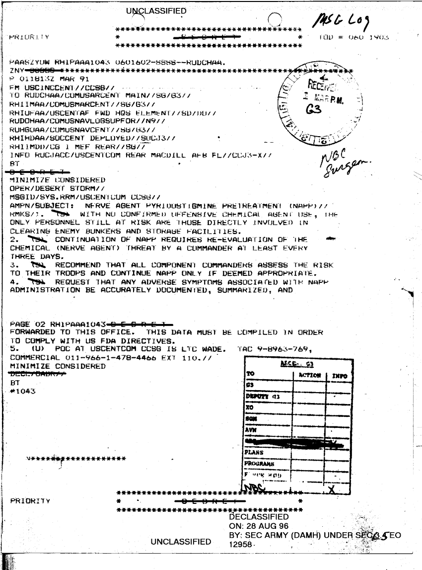 Document 1 f:/Week-31/BX000438/TOC LOGS MSG FILE LOGS 2-4 MAR 91/nerve agent pyridostigme pretreatment:09069615153932