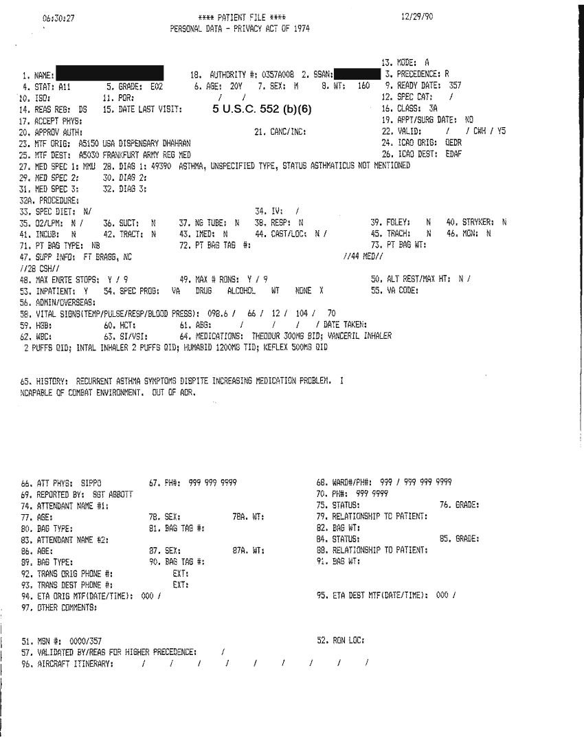 Document 18 f:/Week-32/BX000482/MEDSTAT - SITREPS DEC 90 4 OF 6/patient file:09069614061216