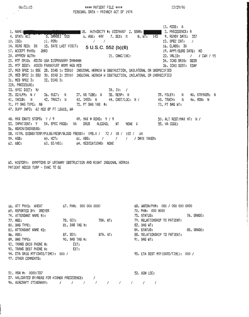 Document 18 f:/Week-32/BX000482/MEDSTAT - SITREPS DEC 90 4 OF 6/patient file:09069614061216
