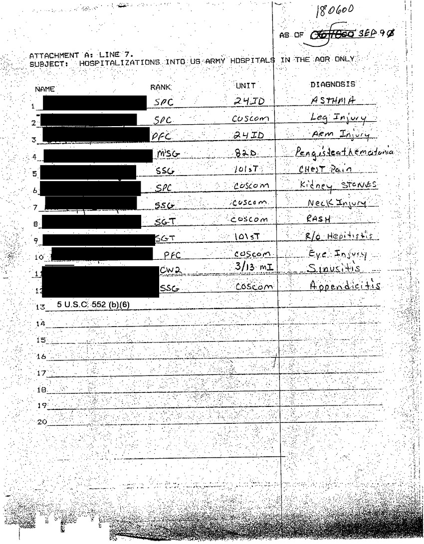 Document 6 f:/Week-32/BX000482/MEDSTAT - SITREPS AUG 90 1 OF 1/army hospitalization outpatient visits 18 sep :09069614061417