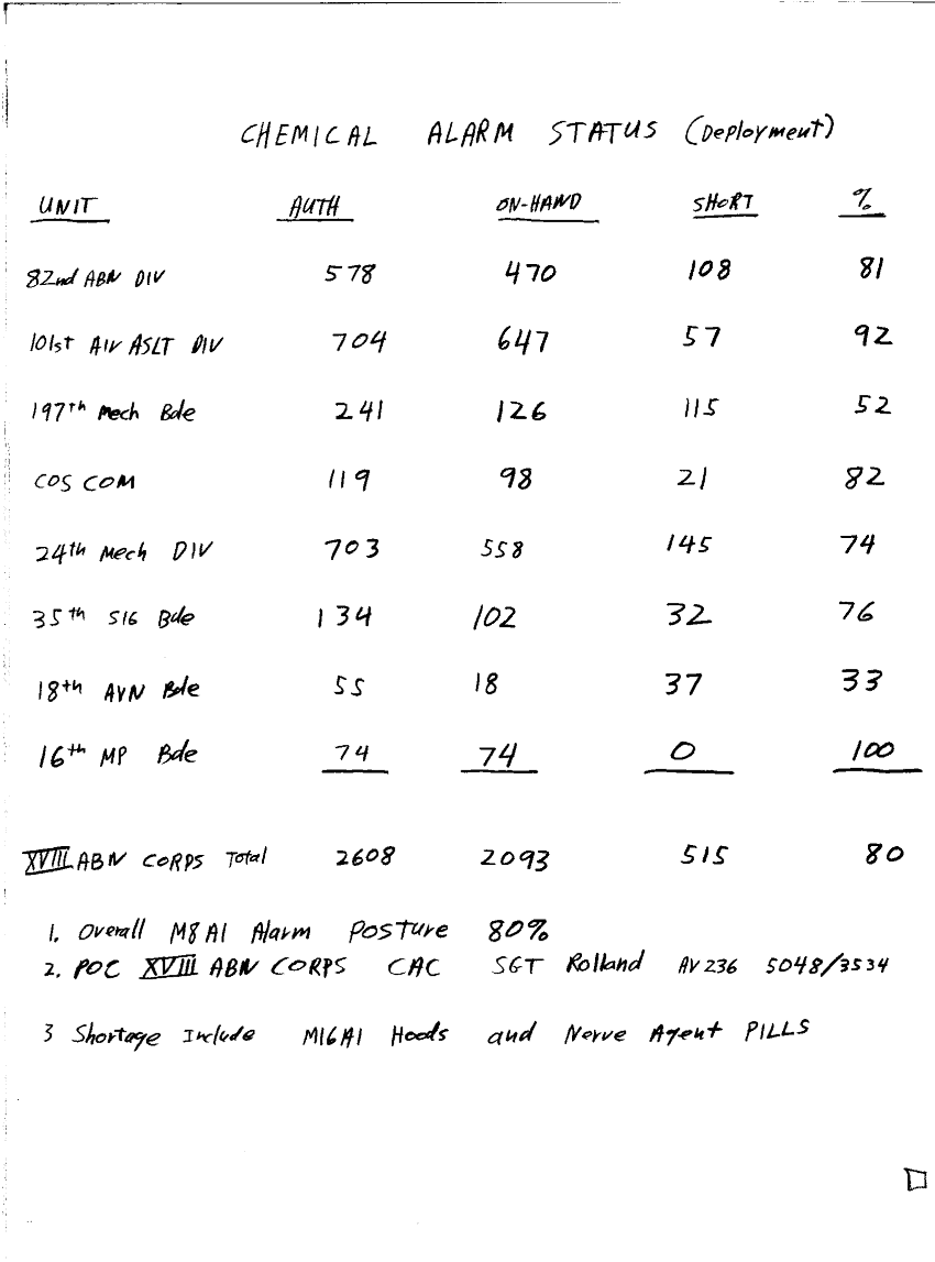 Document 1 f:/Week-29/BX000420/HISTORIANS BACKGROUND MATERIAL FILES - G3 NBC MIS 2 OF 4/chemical alarm status deployment:09069615154235