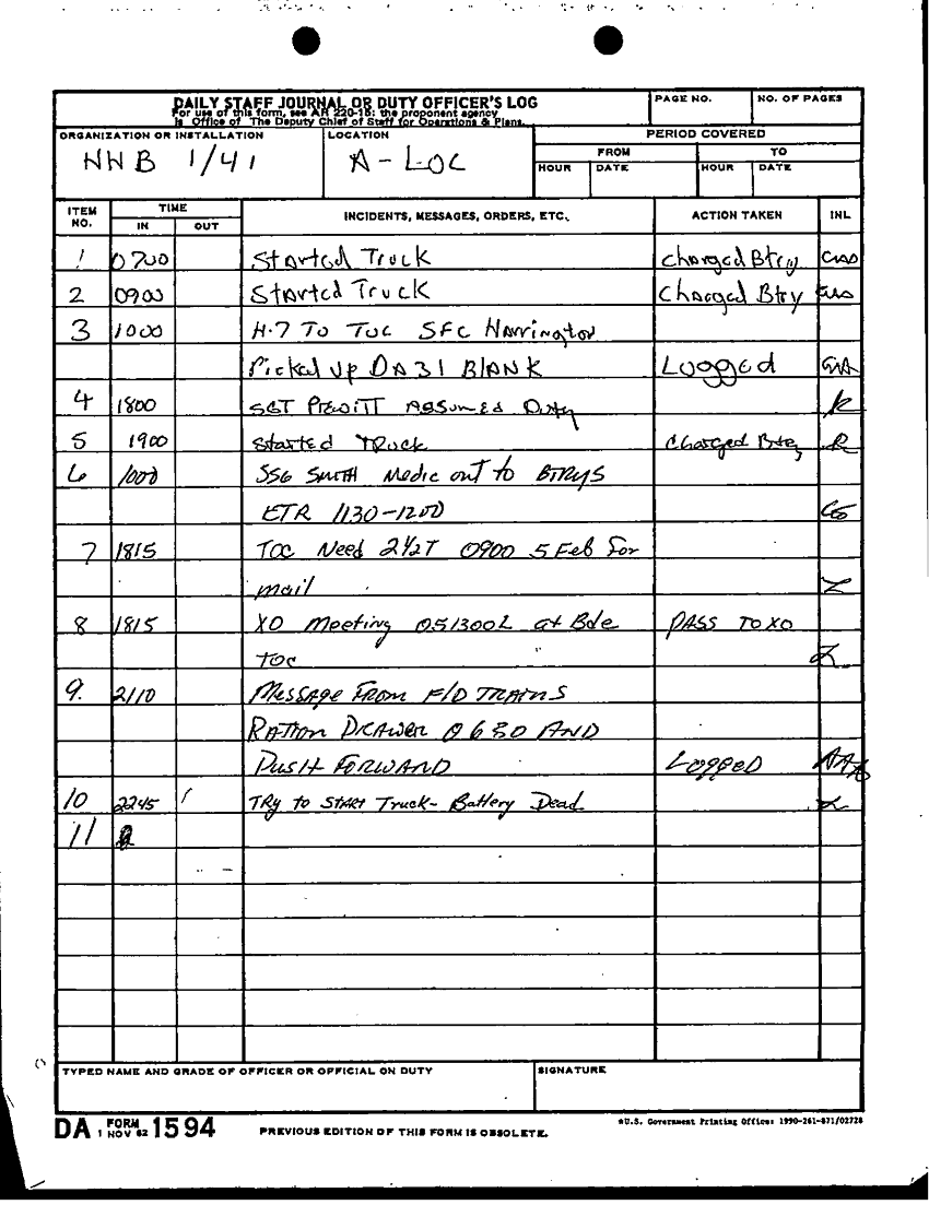 Subject = DAILY STAFF JOURNAL HHB 1 41 A LOC