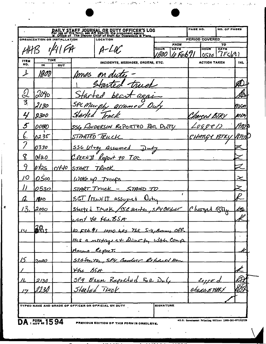 Document 21 f:/Week-22/BX001431/DAILY STAFF JOURNALS - 24TH INF - JAN-FEB 91/daily staff journal hhb 1 41 a loc:09069614062522