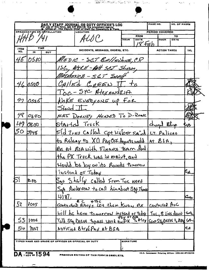 Document 21 f:/Week-22/BX001431/DAILY STAFF JOURNALS - 24TH INF - JAN-FEB 91/daily staff journal hhb 1 41 a loc:09069614062522