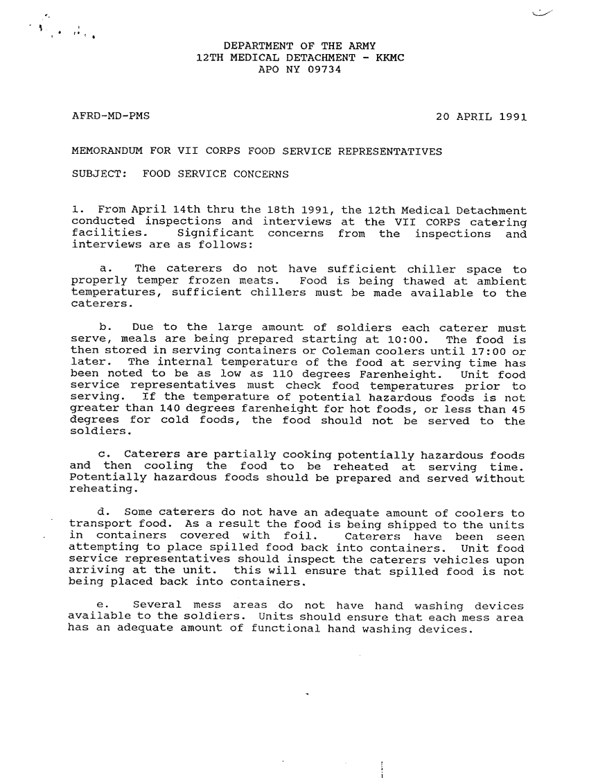 Document 2 f:/Week-34/BX005153/HISTORICAL FILE 422ND MED DET/vii corps memo caterer food storage concerns 29 :09209615582340