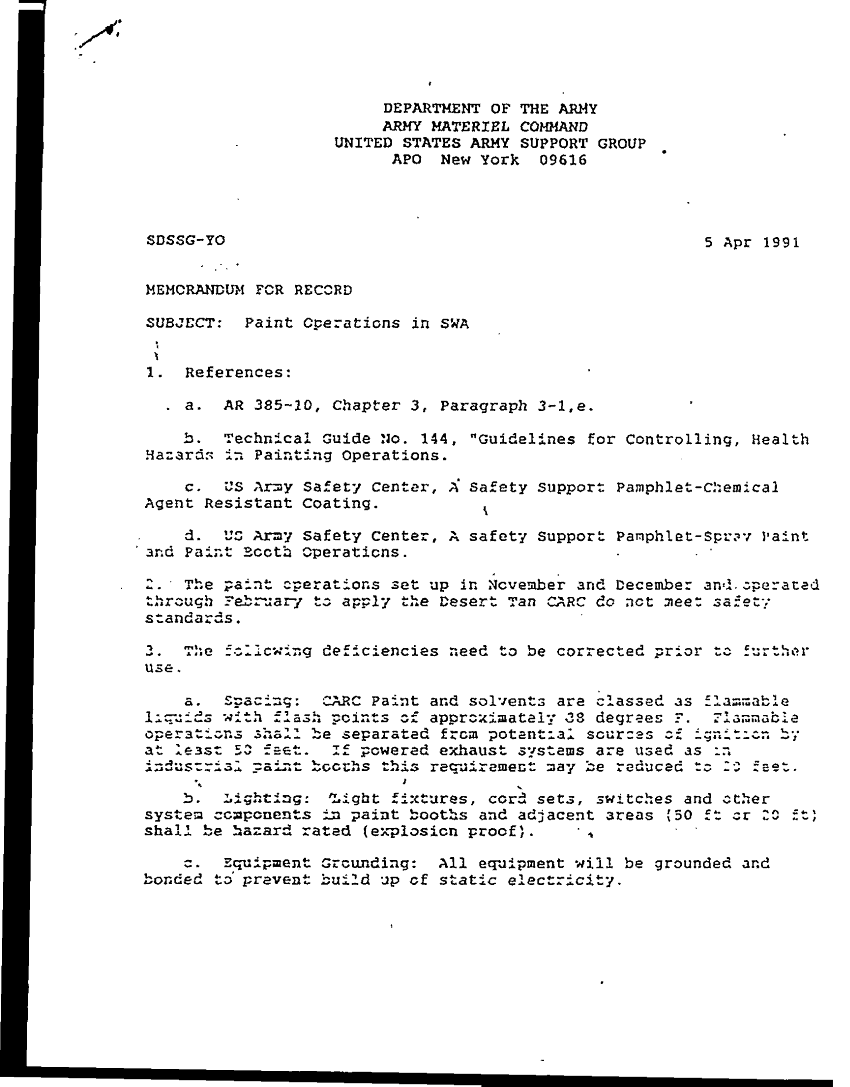 Document 3 f:/Week-34/BX005154/CARC ISSUES/paint opn in swa 5 apr 91:09209615582849