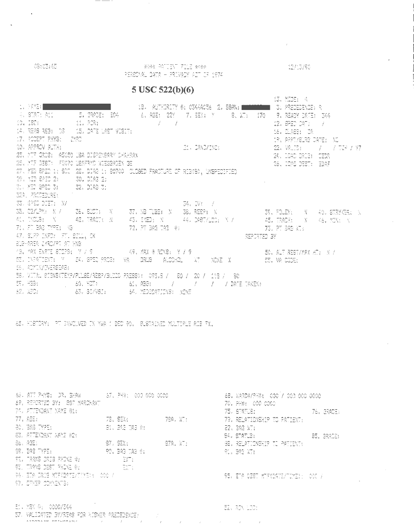 Document 21 f:/Week-32/BX000482/MEDSTAT - SITREPS DEC 90 1 OF 6/patient file personal data:09209615583355
