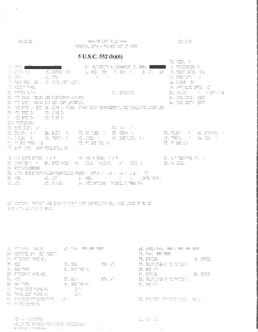 Document 21 f:/Week-32/BX000482/MEDSTAT - SITREPS DEC 90 1 OF 6/patient file personal data:09209615583355