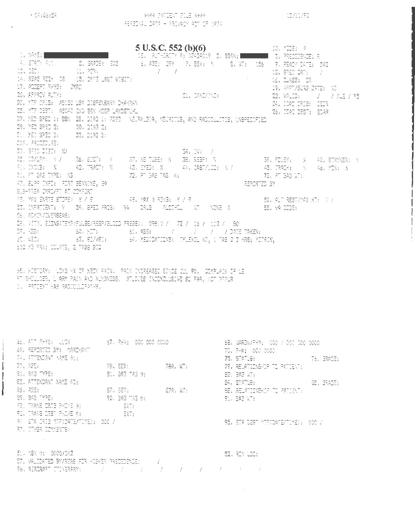 Document 14 f:/Week-32/BX000482/MEDSTAT - SITREPS DEC 90 1 OF 6/patient file personal data:09209615583457