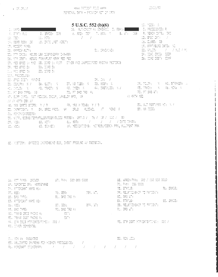 Document 14 f:/Week-32/BX000482/MEDSTAT - SITREPS DEC 90 1 OF 6/patient file personal data:09209615583457