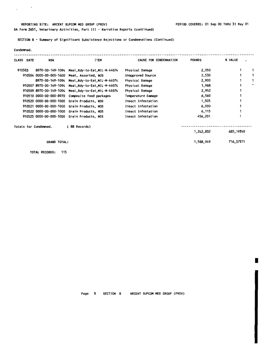 Subject = VETERINARY ACTIVITIES 1 31 MAY 91