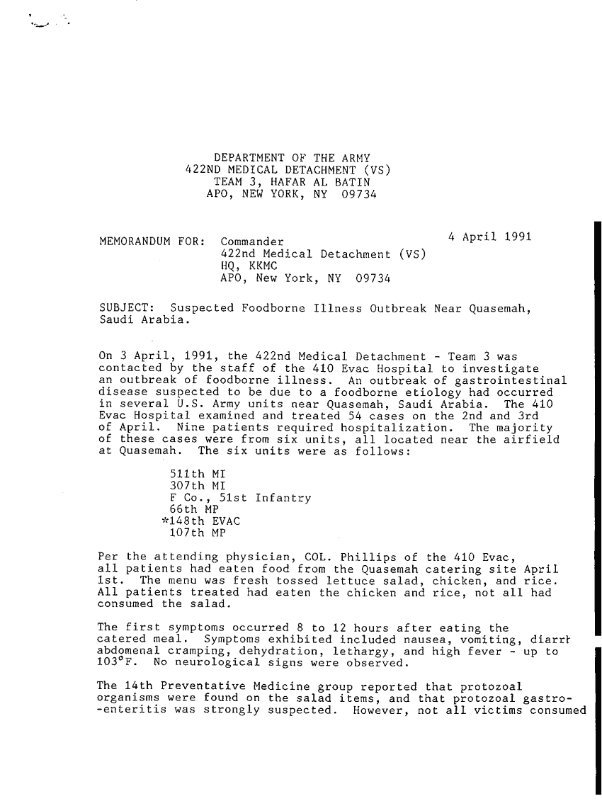 Document 2 f:/Week-34/BX005153/HISTORICAL FILE 422ND MED DET/422nd med det memo sus food ill outbreak quasema:09209615583762