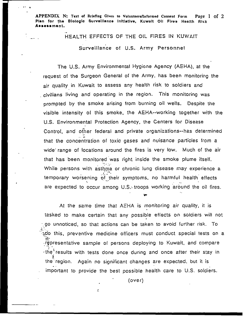 Subject = APPENDIX N HEALTH EFFECTS OF THE OIL FIRES IN K