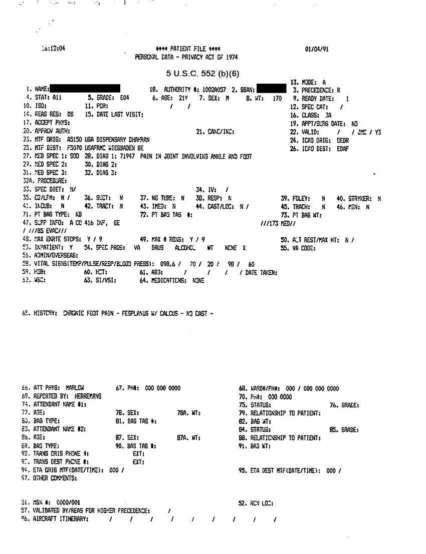 Document 31 f:/Week-31/BX000460/MEDSTAT- SITREPS - JANUARY - 1/personal data privacy act of 1974 4 jan 91:09209615580712