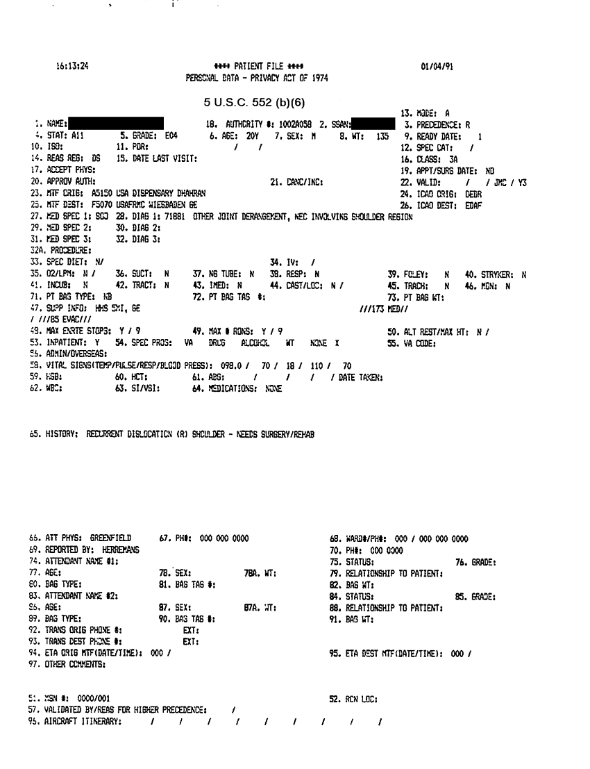 Document 31 f:/Week-31/BX000460/MEDSTAT- SITREPS - JANUARY - 1/personal data privacy act of 1974 4 jan 91:09209615580712
