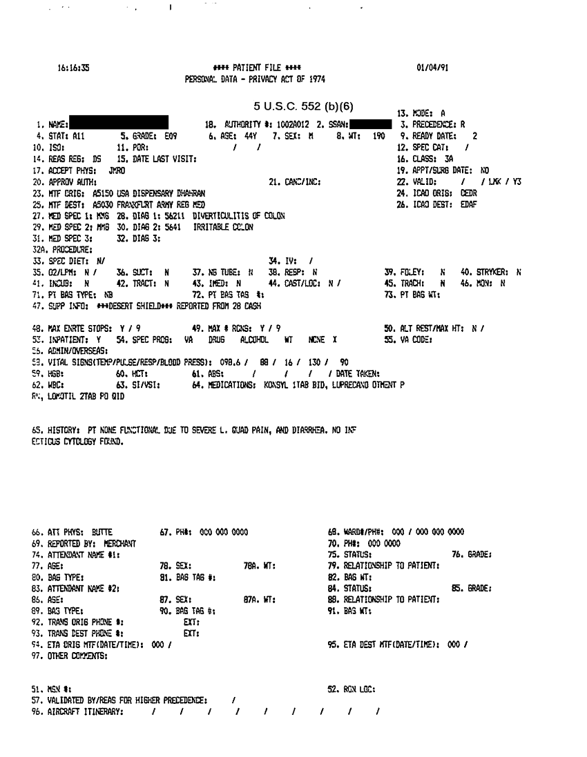 Document 31 f:/Week-31/BX000460/MEDSTAT- SITREPS - JANUARY - 1/personal data privacy act of 1974 4 jan 91:09209615580712