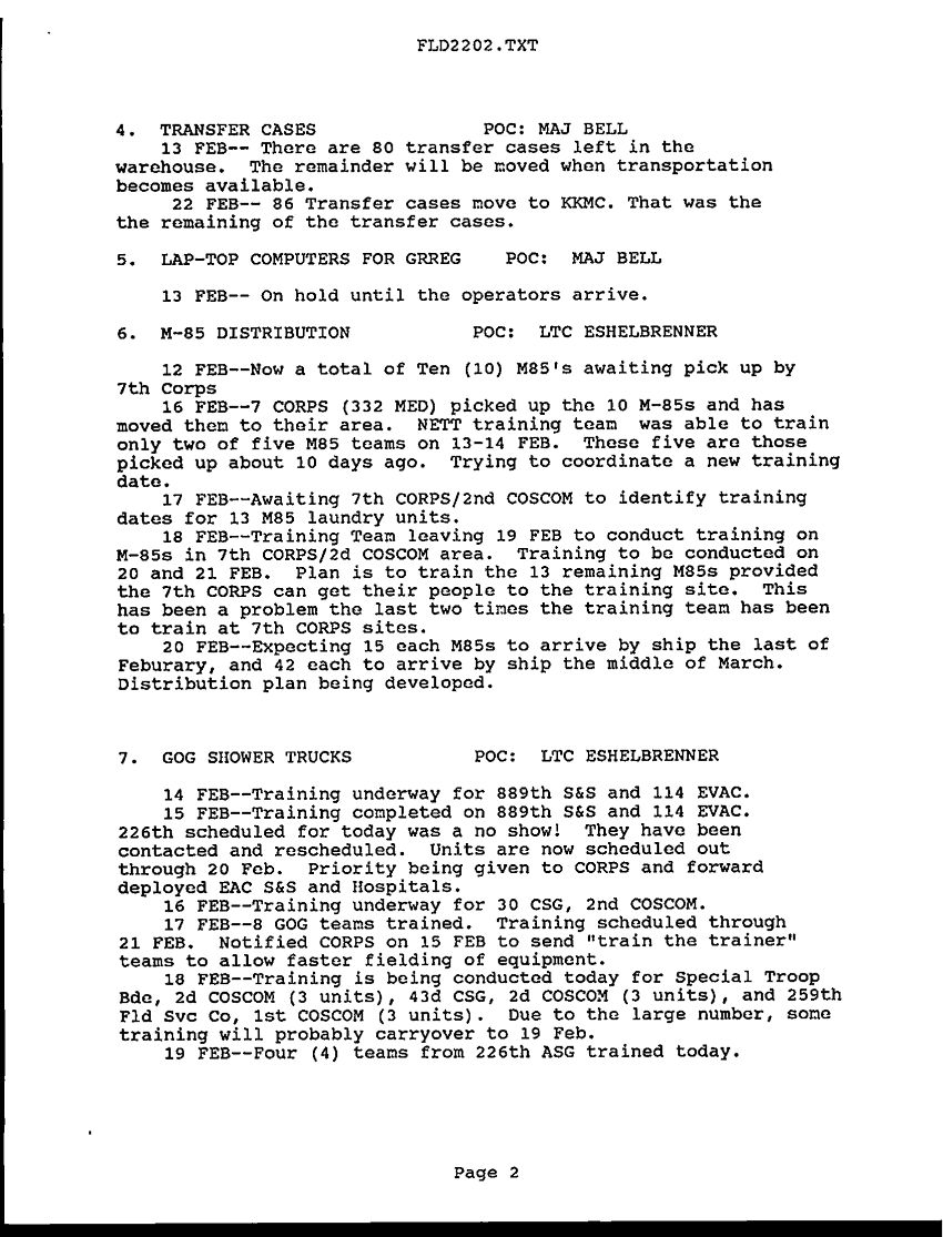 Document 3 f:/Week-34/BX005203/DAILY FLD SERVICE-CLASS I REPORTS-1/field services cl i cl i w issues and actions 22:09209615585389