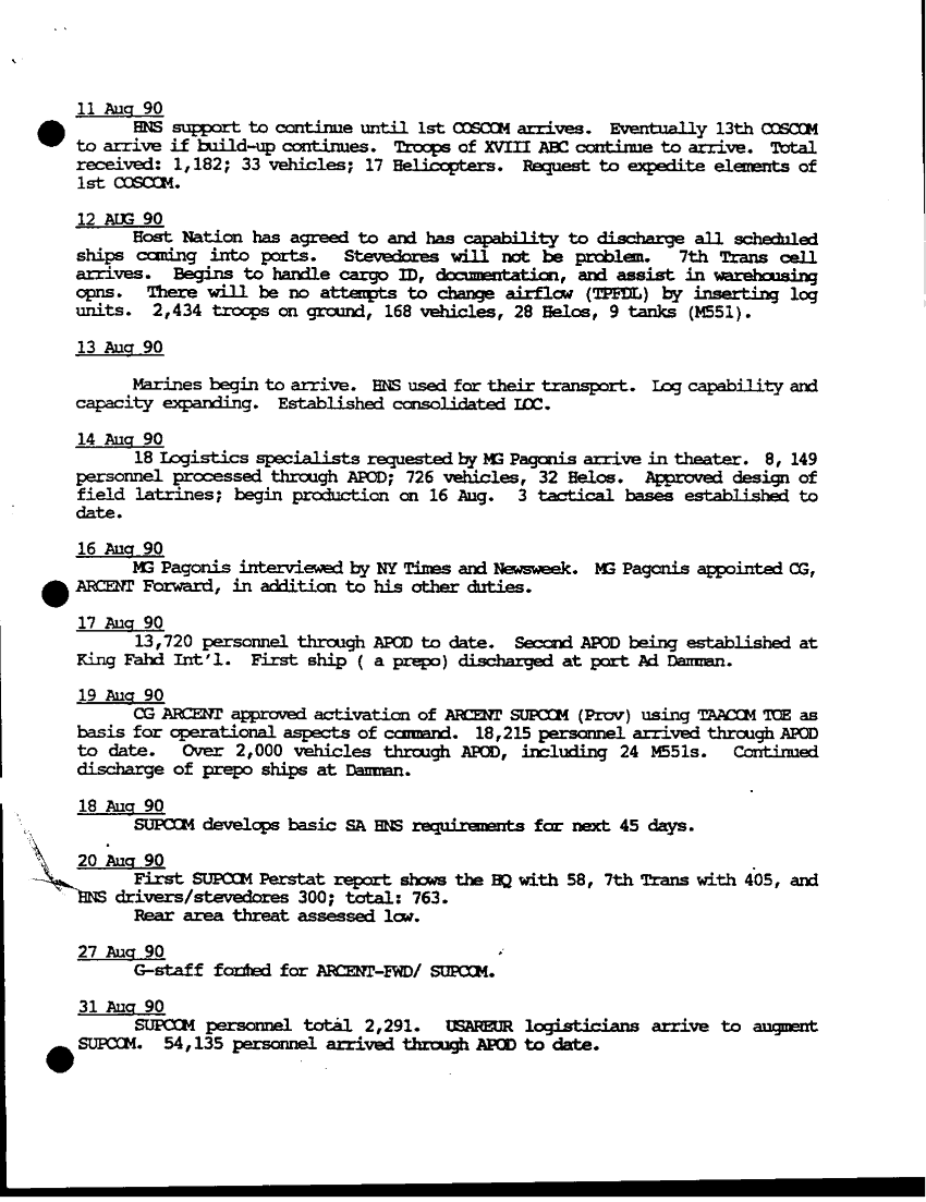 Document 15 f:/Week-33/BX005007/HQS ARCENT WRITTEN AAR 30 MAY 91/chronology 22d spt cmd ops desert shield and sto:09209615585492