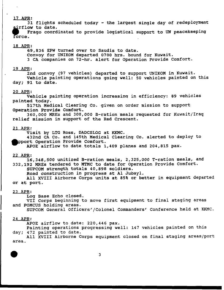 Document 15 f:/Week-33/BX005007/HQS ARCENT WRITTEN AAR 30 MAY 91/chronology 22d spt cmd ops desert shield and sto:09209615585492