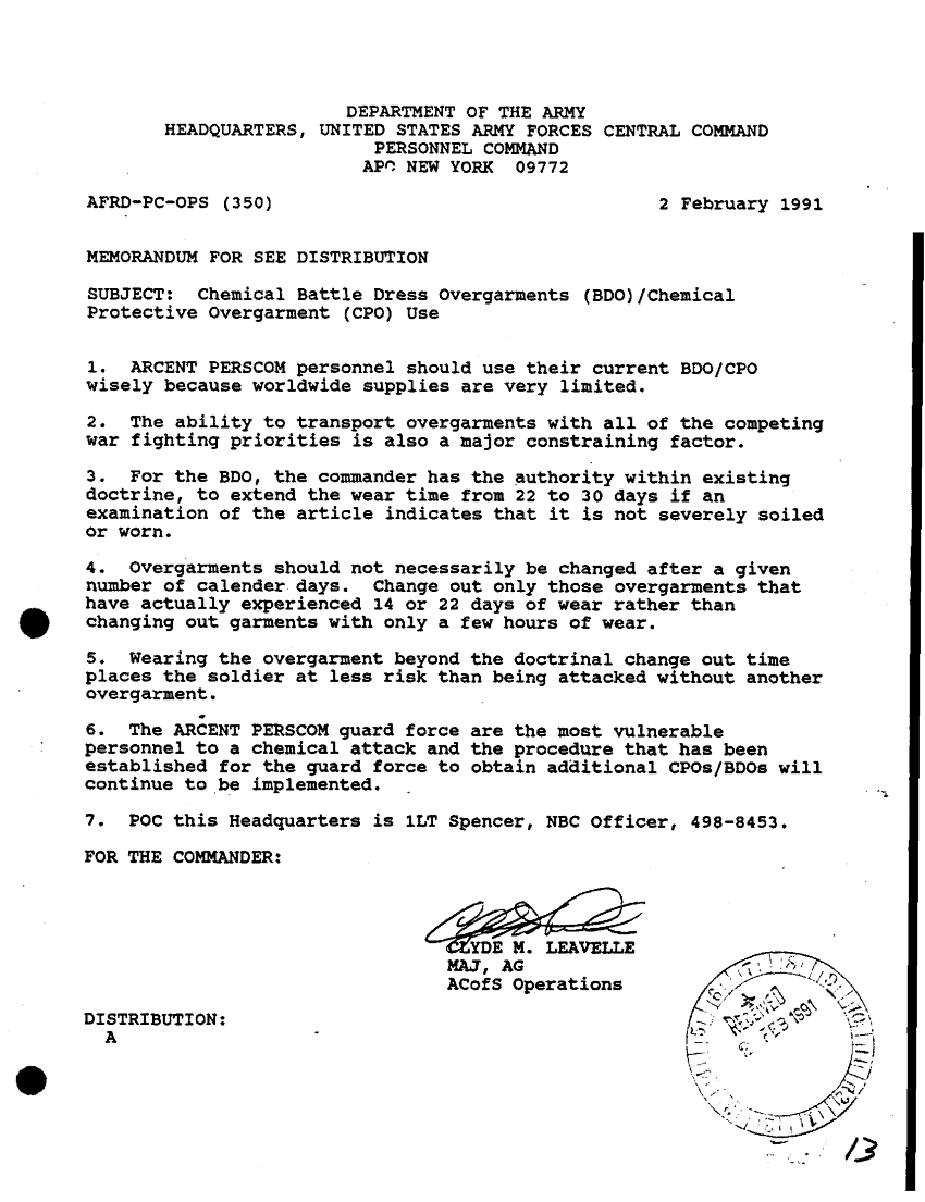 Document 5 f:/Week-33/BX000527/VOLUME 15B 10TH PERSCOM AFTER ACTION REPORT/chemical battle dress overgarment cpo:09209615580814