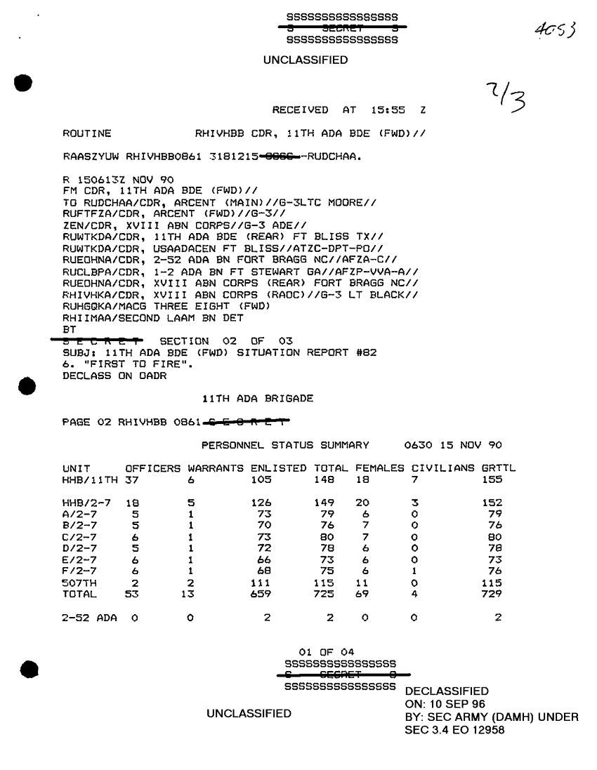 Document 5 f:/Week-32/BX000499/COMMAND REPORTS SITREPS 11TH ADA BDE 6 OCT 90-23 NOV 90/sitrep 11th ada no 82 15 nov 90:09209615581425