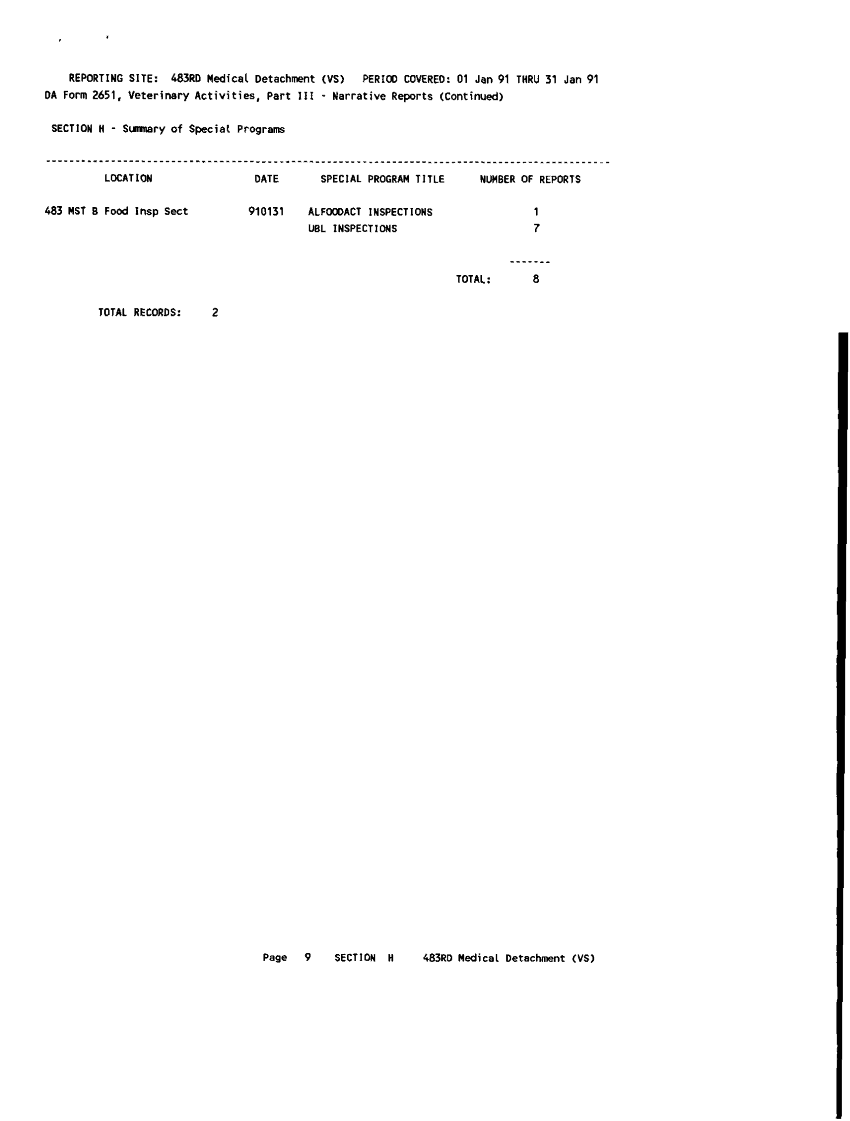 Subject = VETERINARY ACTIVITIES 1 31 JAN 91