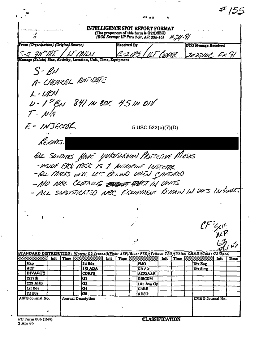 Document 1 f:/Week-22/BX001605/101ST ABN DIV AASLT DUTY LOG FEB 91-D/intelligence spot report:092096155906110