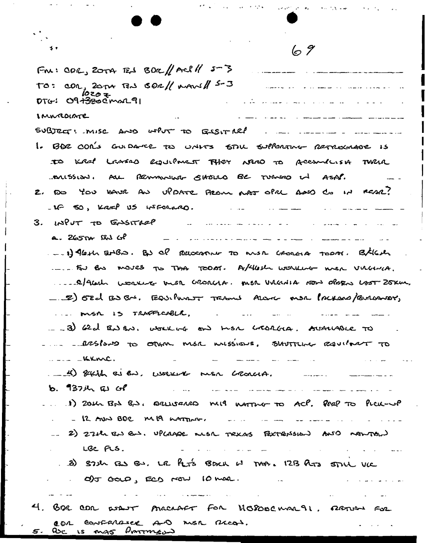 Document 3 f:/Week-18/BX000057/DUTY LOG MAIN CP MESSAGES 20 ENGINEER BDE 9 MAR 91/misc and input to ensitrep:10119615410638