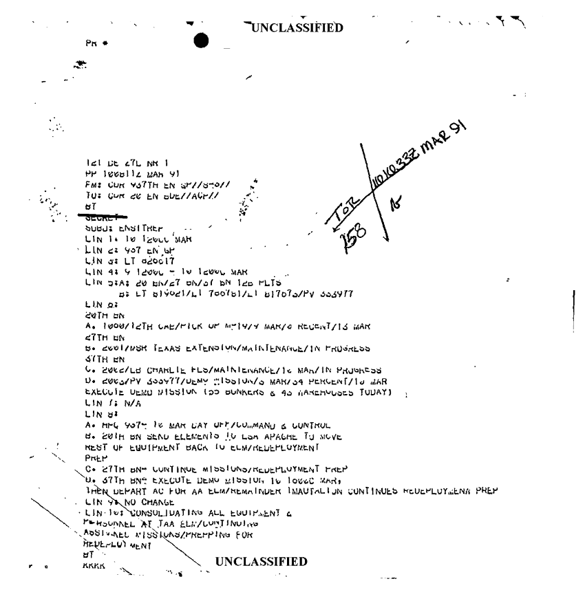 Document 2 f:/Week-18/BX000057/DUTY LOG MAIN CP MESSAGES 20 ENGINEER BDE 10 MAR 91/ensitrep 937th en gp 10 mar 91:10119615411241