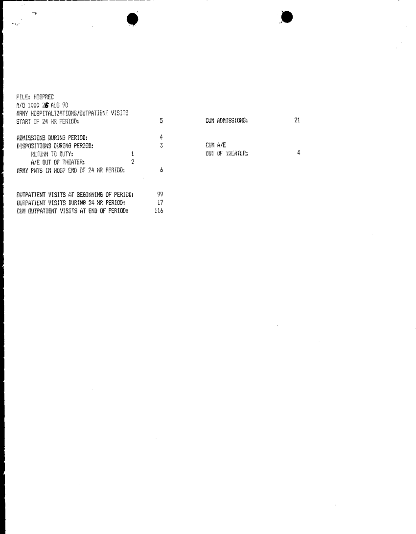 Document 4 f:/Week-32/BX000482/MEDSTAT - SITREPS AUG 90 1 OF 1/army hospitalizations in hn facilities record of:10119615403217