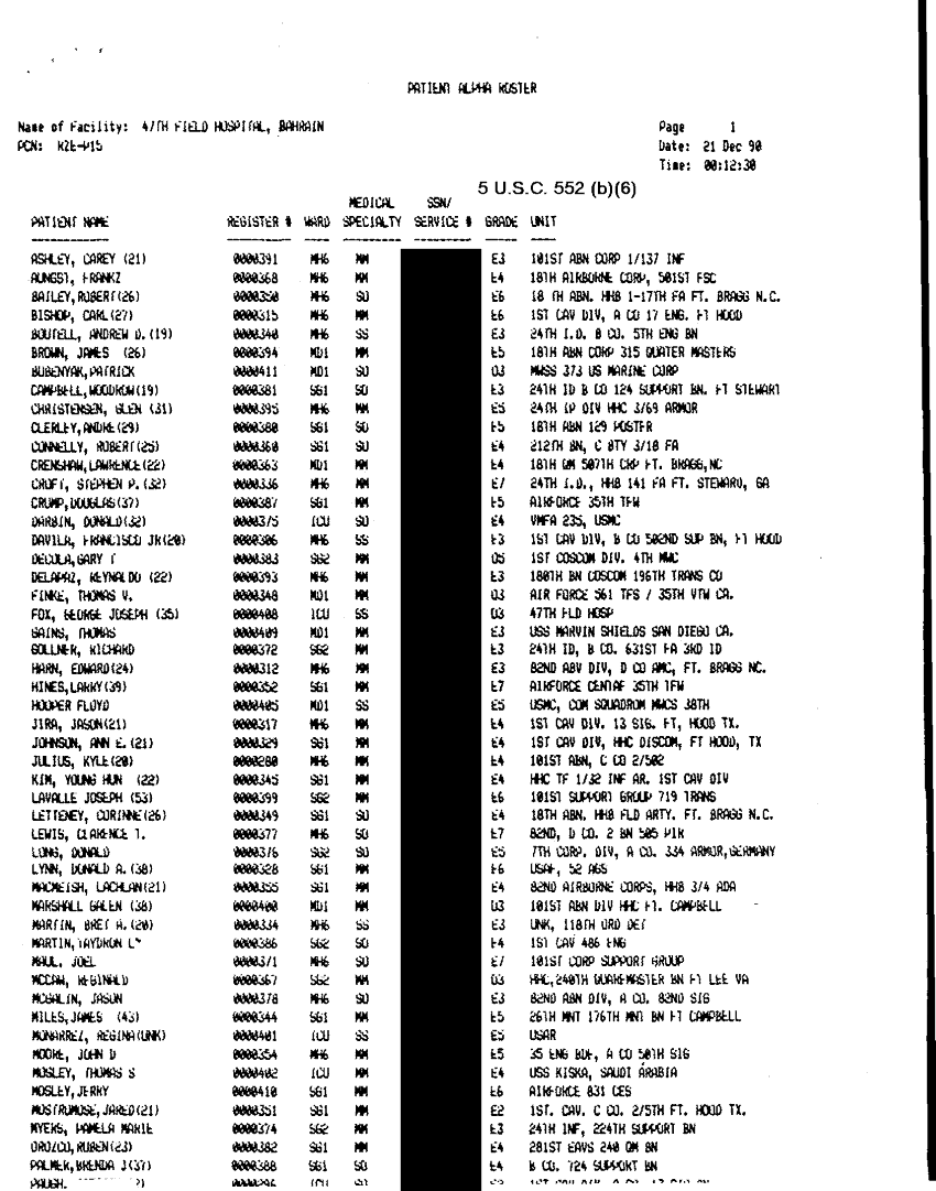 Document 26 f:/Week-32/BX000482/MEDSTAT - SITREPS DEC 90 2 OF 6/patient alpha roster 21 dec 90:10119615403418