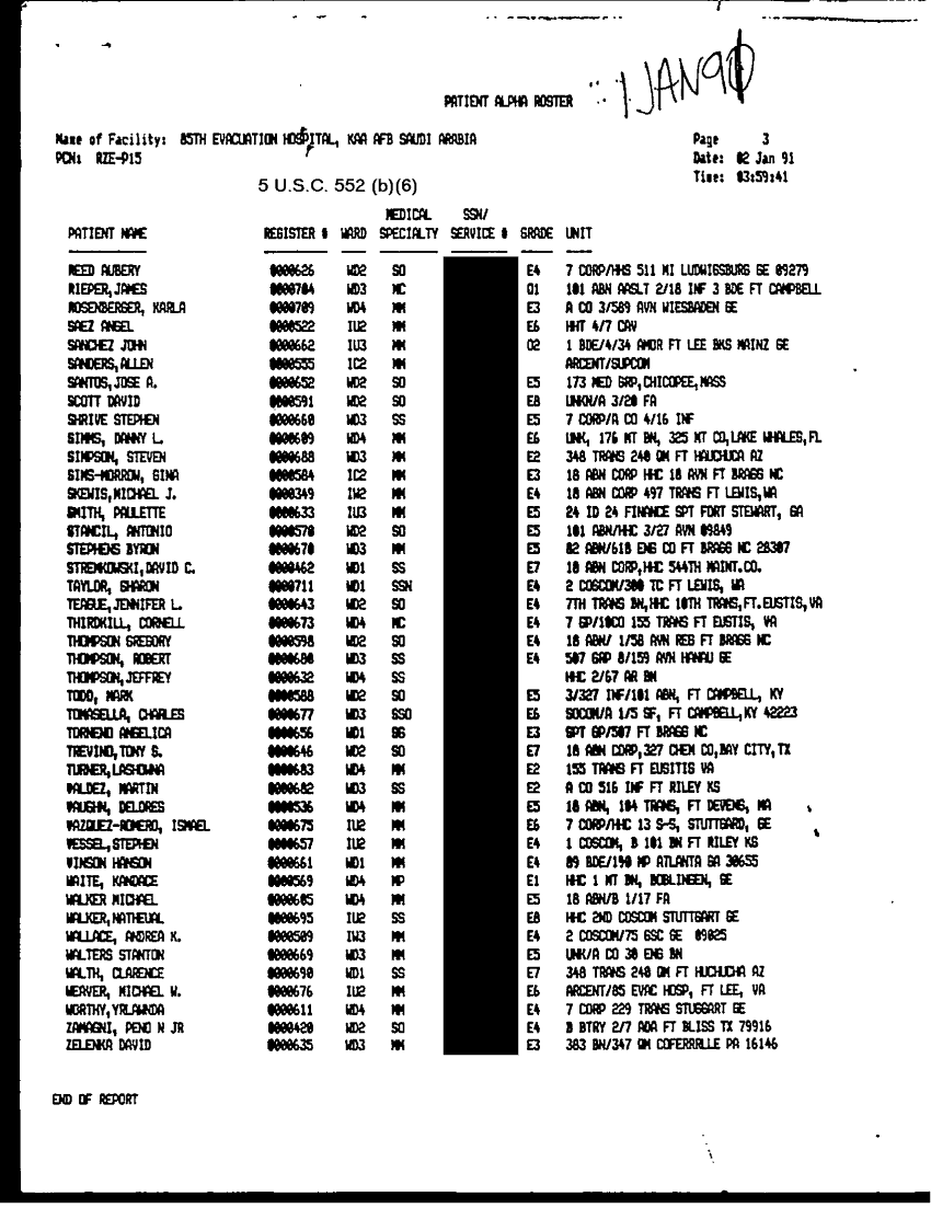 Document 46 f:/Week-31/BX000460/MEDSTAT- SITREPS - JANUARY - 1/patient alpha roster 2 jan 91:10119615403519