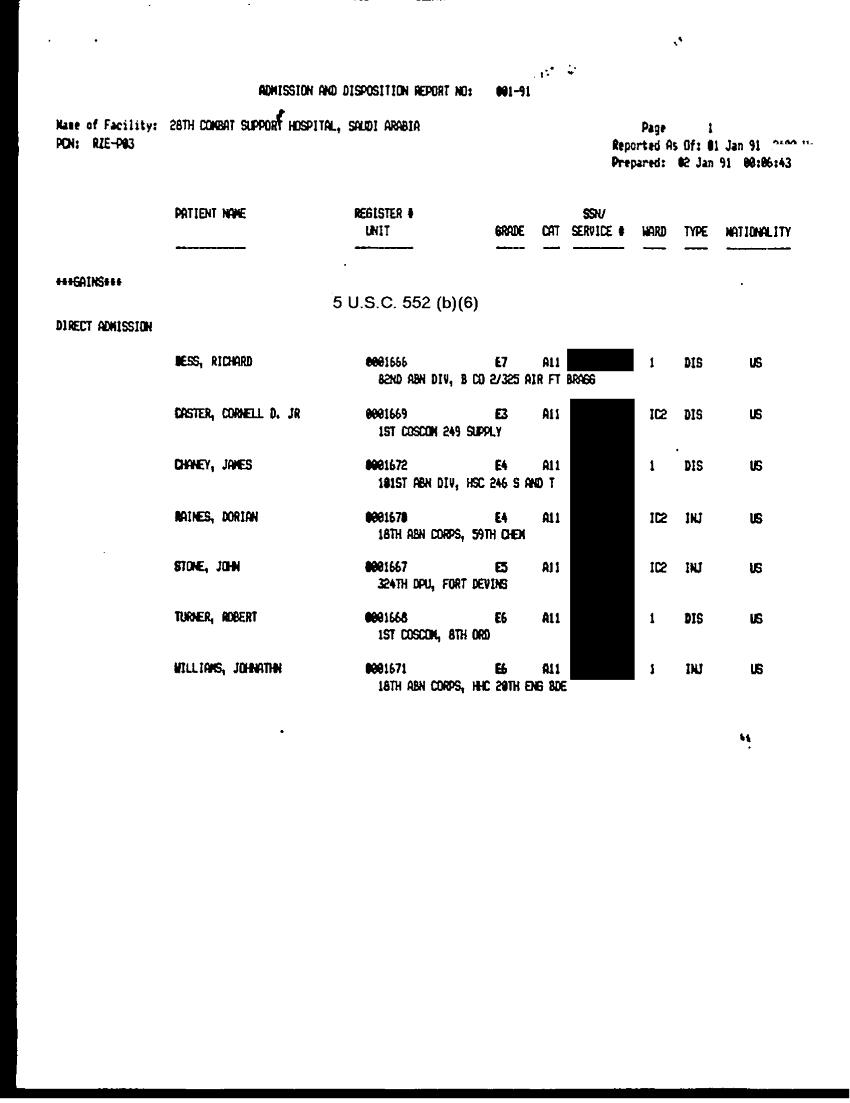 Document 46 f:/Week-31/BX000460/MEDSTAT- SITREPS - JANUARY - 1/patient alpha roster 2 jan 91:10119615403519
