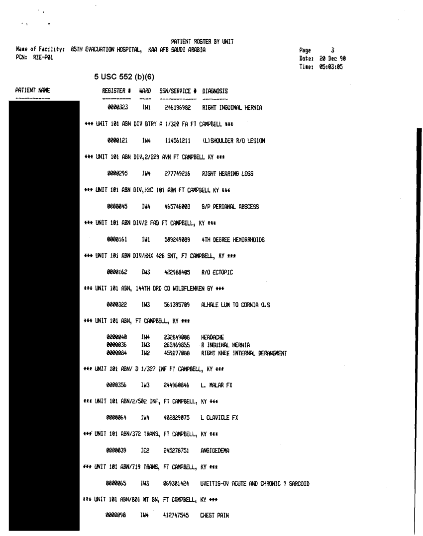 Document 30 f:/Week-32/BX000482/MEDSTAT - SITREPS DEC 90 2 OF 6/patient roster by unit 85th evac hospital 20 d:10119615412450