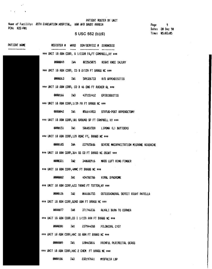 Document 30 f:/Week-32/BX000482/MEDSTAT - SITREPS DEC 90 2 OF 6/patient roster by unit 85th evac hospital 20 d:10119615412450