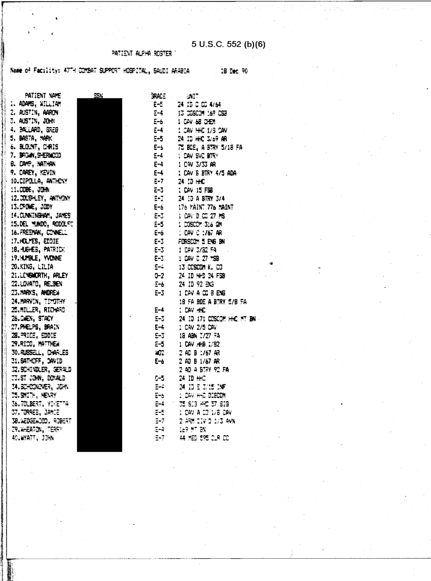 Document 32 f:/Week-32/BX000482/MEDSTAT - SITREPS DEC 90 2 OF 6/patient alpha roster 18 dec 90:10119615413664