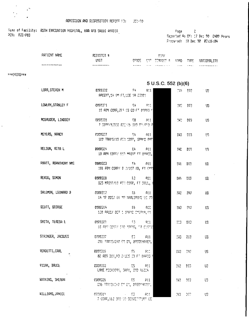 Document 32 f:/Week-32/BX000482/MEDSTAT - SITREPS DEC 90 2 OF 6/patient alpha roster 18 dec 90:10119615413664