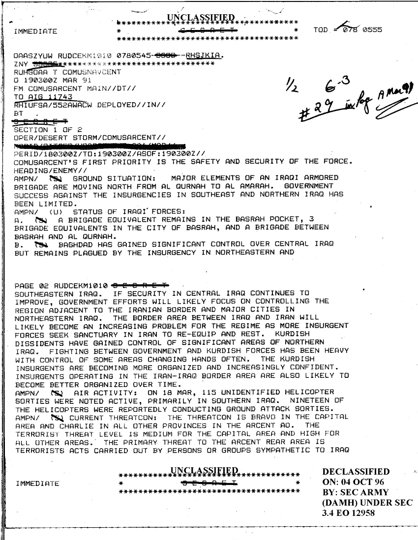 Document 3 f:/Week-33/BX000494/COMMAND REPORTS RPTS TASK FORCE FREEDOM 1 0F 2 2/msgid sitrep usarcent c226 mar:10119615421795