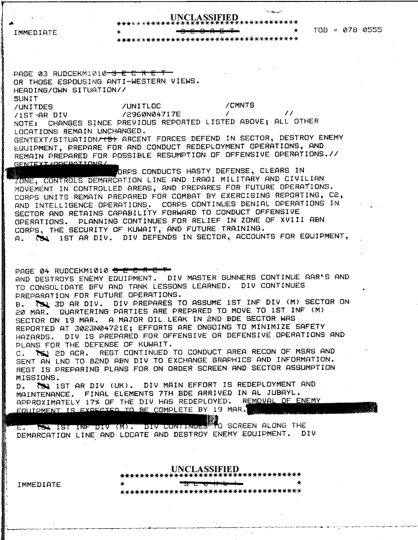 Document 3 f:/Week-33/BX000494/COMMAND REPORTS RPTS TASK FORCE FREEDOM 1 0F 2 2/msgid sitrep usarcent c226 mar:10119615421795