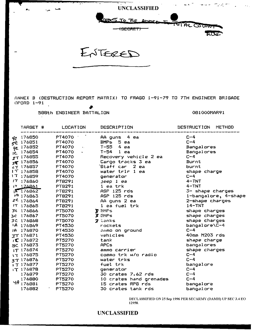 Document 6 f:/Week-24/BX000211/TASK FORCE DEMO DESTROYED TARGETS 2/destruction report matrix to frago 1 91 79:101196154247120