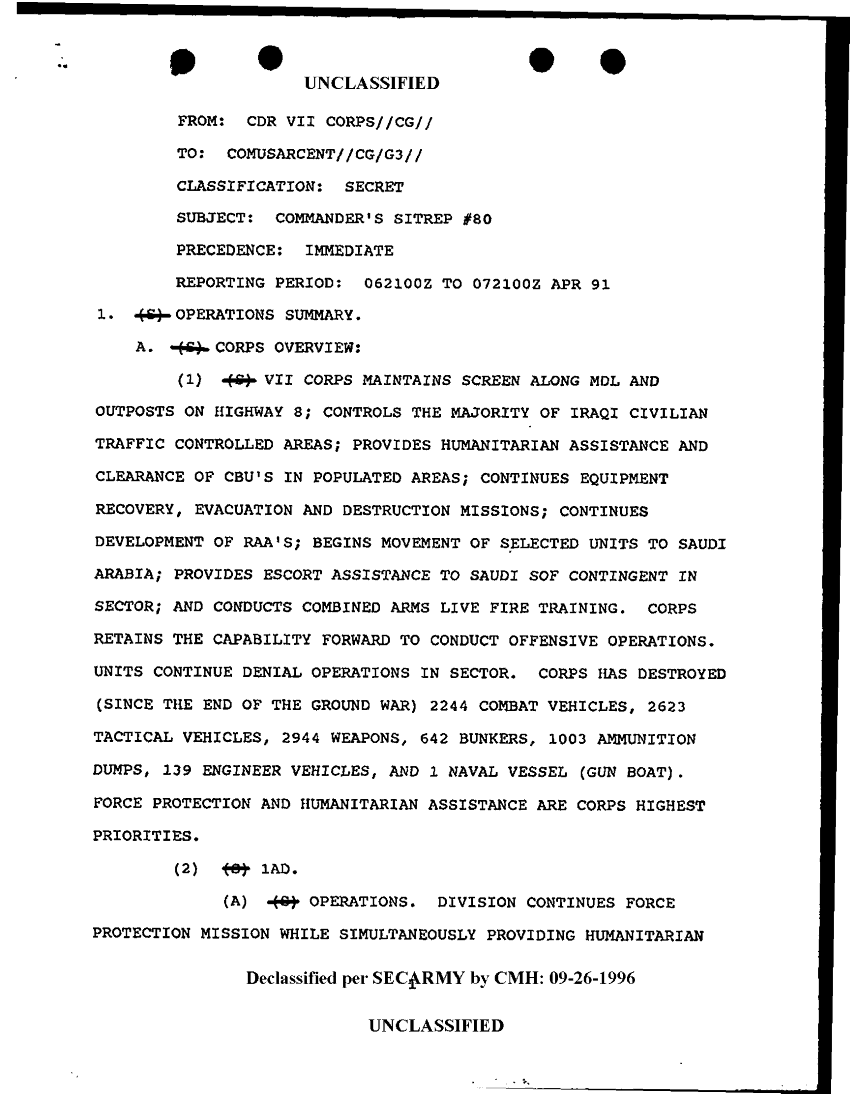Document 13 f:/Week-24/BX000249/VII CORPS CMDRS SITREP 22 MAR THRU 6 MAY 91/commanders sitrep 80:10189613572536