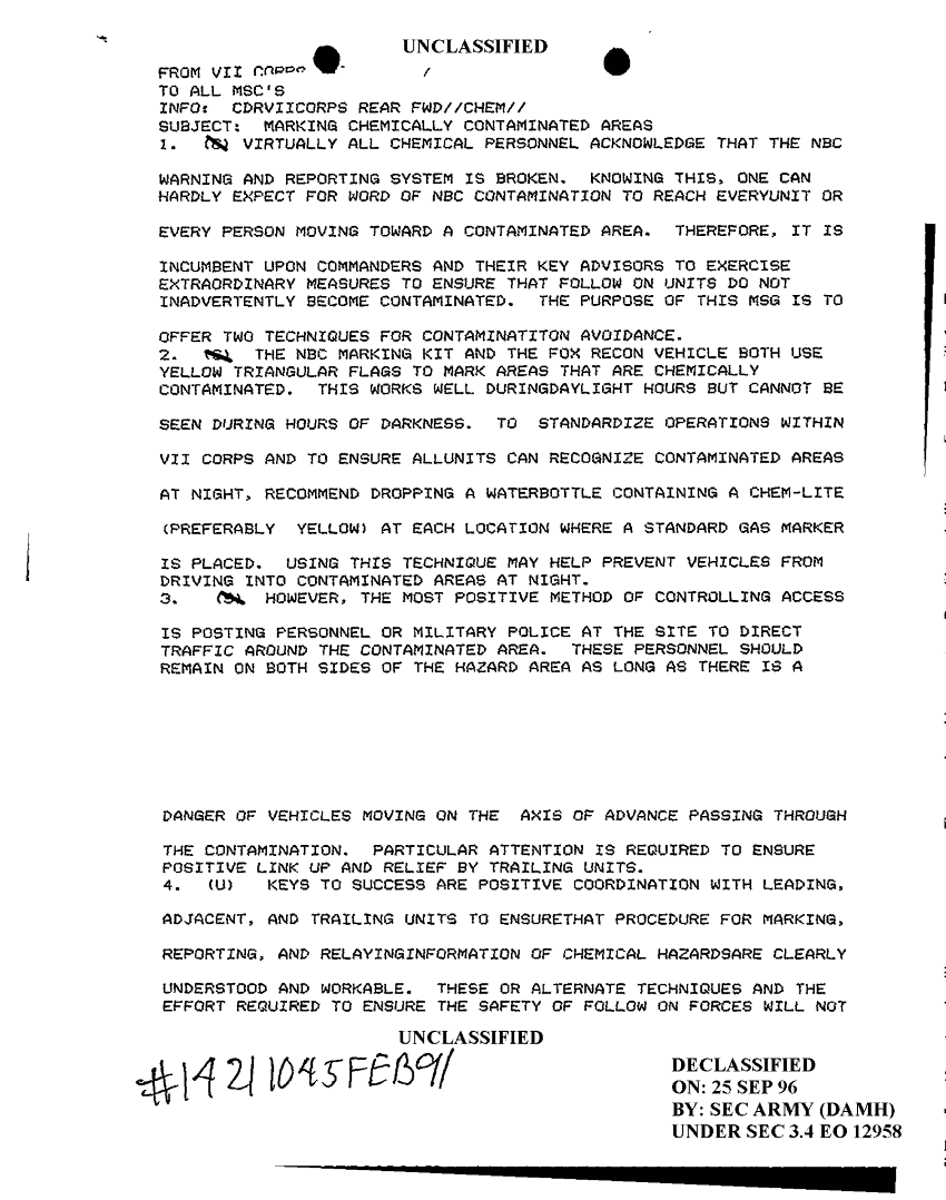 Document 2 f:/Week-25/BX000216/7 CORPS DAILY JOURNALS - ENGINEER REPORTS AND SITREPS/marking chemically contaminated areas:10189613574151