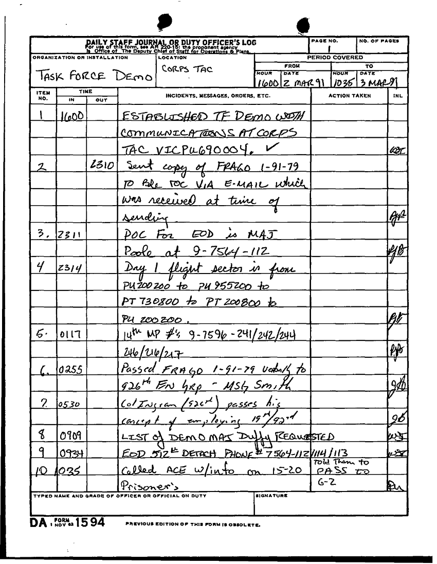 Document 15 f:/Week-24/BX000211/TASK FORCE DEMO LOG 2-14 MAR 91/daily staff journal or duty officer log:10189613580268